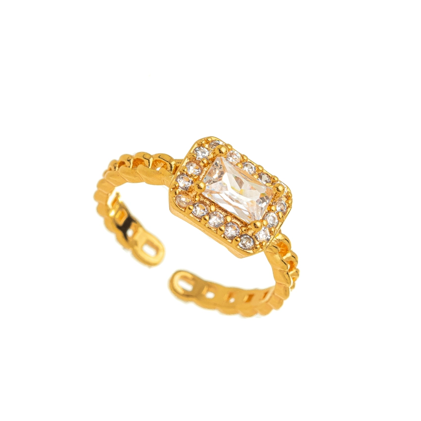 Anel Cravejado Cristal Regulável Confeccionado em Banho de Ouro Amarelo 18k.