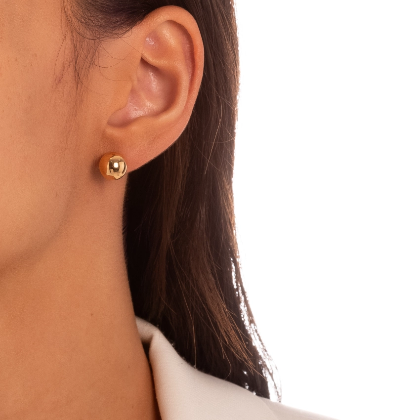 Brinco Bola Lisa Confeccionado em Banho de Ouro Amarelo 18K.